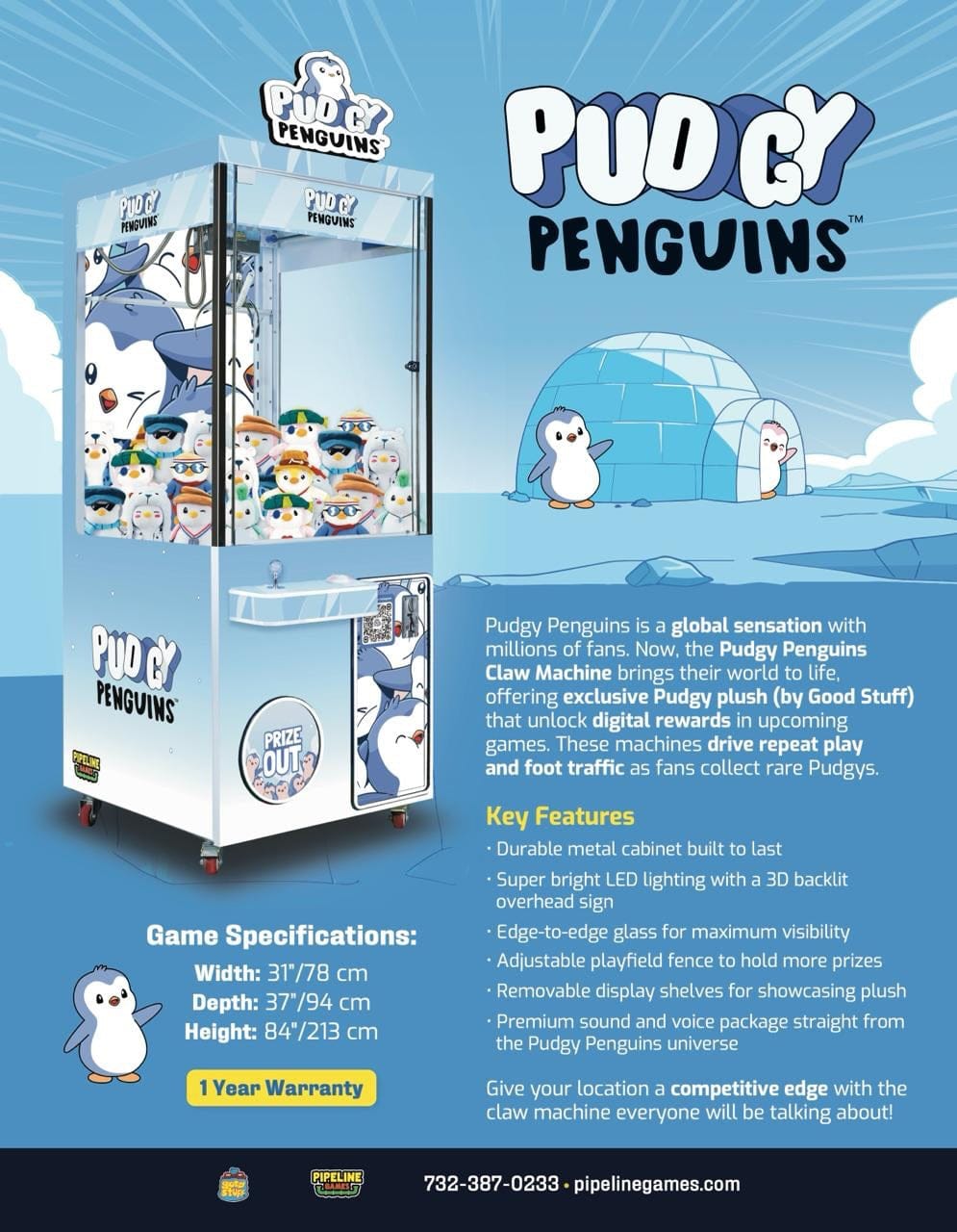 Pudgy Penguins is a global sensation with millions of fans. Now, the Pudgy Penguins Claw Machine brings their world to life, offering exclusive Pudgy plush (by Good Stuff)